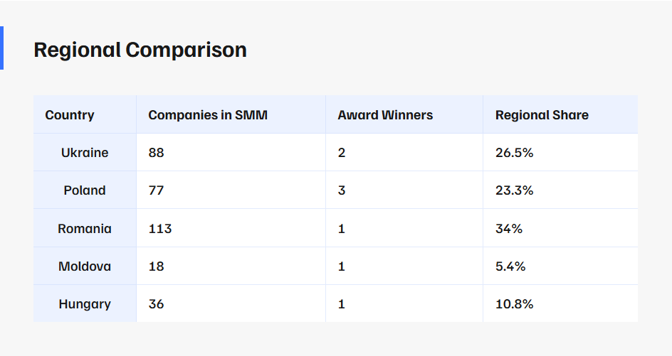 BERLIN, GERMANY, February 10, 2026 /EINPresswire.com/ -- The TechBehemoths Global Excellence Awards 2025 underscore Ukraine’s continued rise as one of Eastern Europe’s most resilient and active digital markets. With 54 award-winning companies and a 9th place global ranking by overall winners, Ukraine recorded strong results in Cybersecurity, WordPress development, and Social Media Marketing (SMM), reflecting a more competitive environment and increasingly selective performance standards.